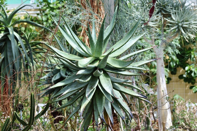 Agave plants are known for their striking appearance and low water requirements, making them ideal for arid climates.